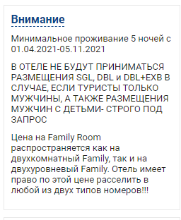 >>62699 Далеко не во всех отелях, но есть такое. Не селят одиноких мужчин, мужские пары и мужские компании. Если летишь с туроператором, то у них есть стоп-лист таких отелей, тебе просто не аппрувнут путевку. Вот например санмаровский список: https://www.sunmar.ru/agent-information-hotels_turkey/