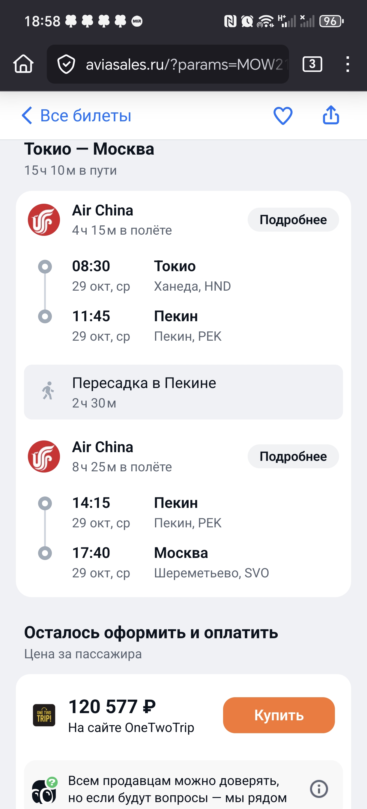 >>71491 На авиасеилс смотрел, а потом вспомнил, что поиск стоял на маршруты из Минска, когда поменял на Москву внезапно $500 в одну сторону превратились в $300, хотя Минск-Москва стоит в районе $70.Но покупал все равно через трип.ком