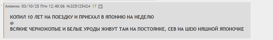 >>71488 Примерно никакой, как для натах дать камерунцу или эфиопу. Но многие хотят богатого джона чтоб что-то поменять в жизни. На западных форумах полно историй как под старость заводят себе азиаточку вайфу, в том числе японочку. >>71487 Насколько? Создай анкету джона на рашн дейтинге еще больше охуеешь как бабы сами пишут пачками. >>71486 > Обычно если у себя дома инцел, то везде будешь инцелом. Это не совсем так работает, как минимум ты выше местных инцелов за счет элемента экзотики. У меня знакомый как-то поехал в китай, там просто гуляя в парке подцепил тян молодую симотную, ей было интересно узнать про него и про рашку, она сама познакомилась первая, поцелуи и так далее тоже было, в рашке с ним такое за всю жизнь не происходило, ни разу.