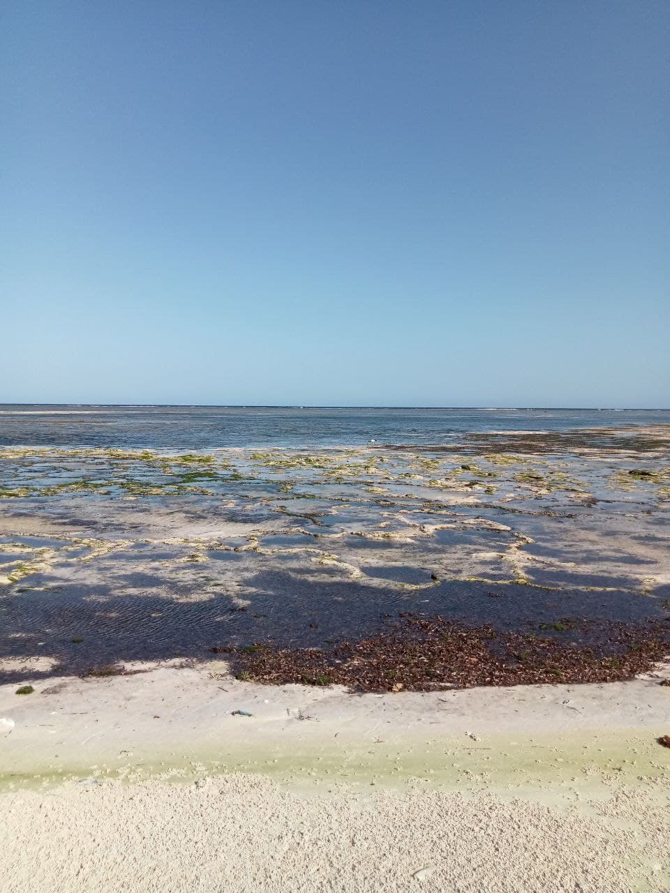 Море везде выглядит как-то так. Воды по щиколотку метров 500, такая ходьба с препятствиями. Плюс там много ямок. Ещё там дома у крабов, ты ему на крышу наступаешь, он вылезает и такой с клешней на тебя "а ну иди сюда ублюдок, ты кого трахнуть собрался, я тебя сам трахну, говно, жопа" и щелкает клешней. Вот идешь ты по этой хуйне аки Моисей по Красному морю, а там дальше хз, где отмель заканчивается, там буй видел, типа дальше не рекомендуется. А я ж поплавать очень хотел. Тем паче водичка как парное молоко. А вот ветер океанический, прохладный, хоть и экватор тут.