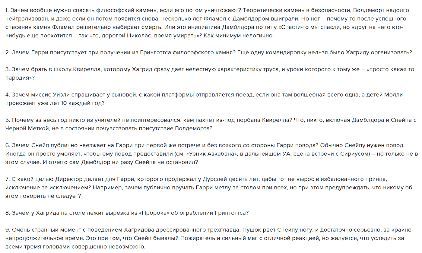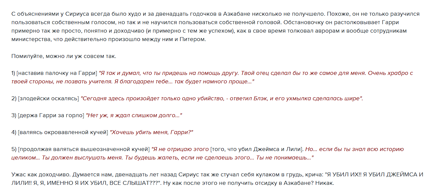 И да, к слову о "читало книги" - книги выпускались 20 лет назад. Превалирующее большинство читало их детьми/подростками. Много оттуда помнишь? Мб Винки помнишь? Сцену, где СНейп нахамил Гермионе из-за её увеличенных зубов или сцену с подарком Снейпу в виде шляпы? Мне кажется, ты судишь в своих оценках знания канона потенциальной аудиторией, во-первых, по себе, а, во-вторых, сильно преувеличиваешь свои знания канона.