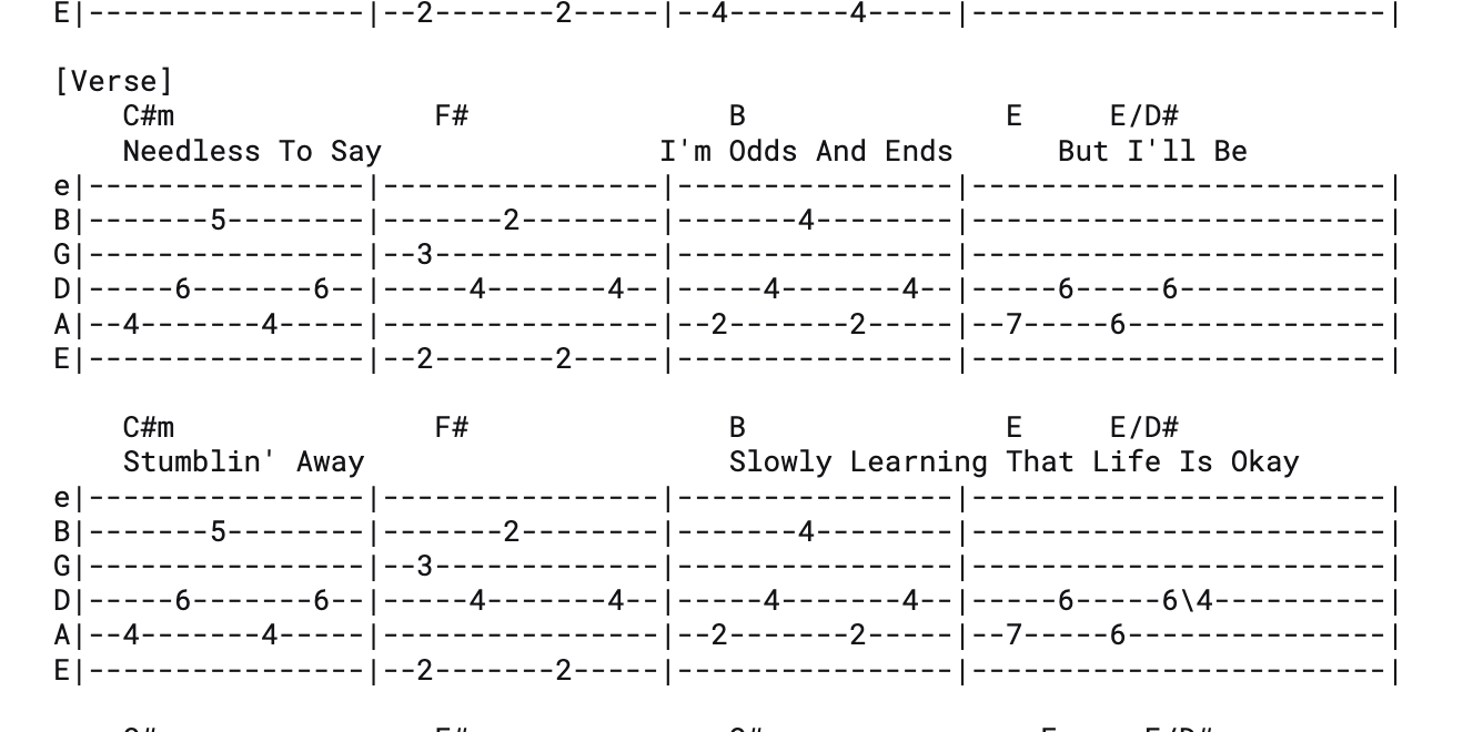 >>3397996 там шестая не играет вообще и иногда играет первая рамзикс этого не делает и зажимает не те аккорды - Am, A, G, C (не # и не минорный) и еще очень часто ре мажор нельзя твои табы сдвинуть так чтобы получились эти акки не загазлайтишь короче