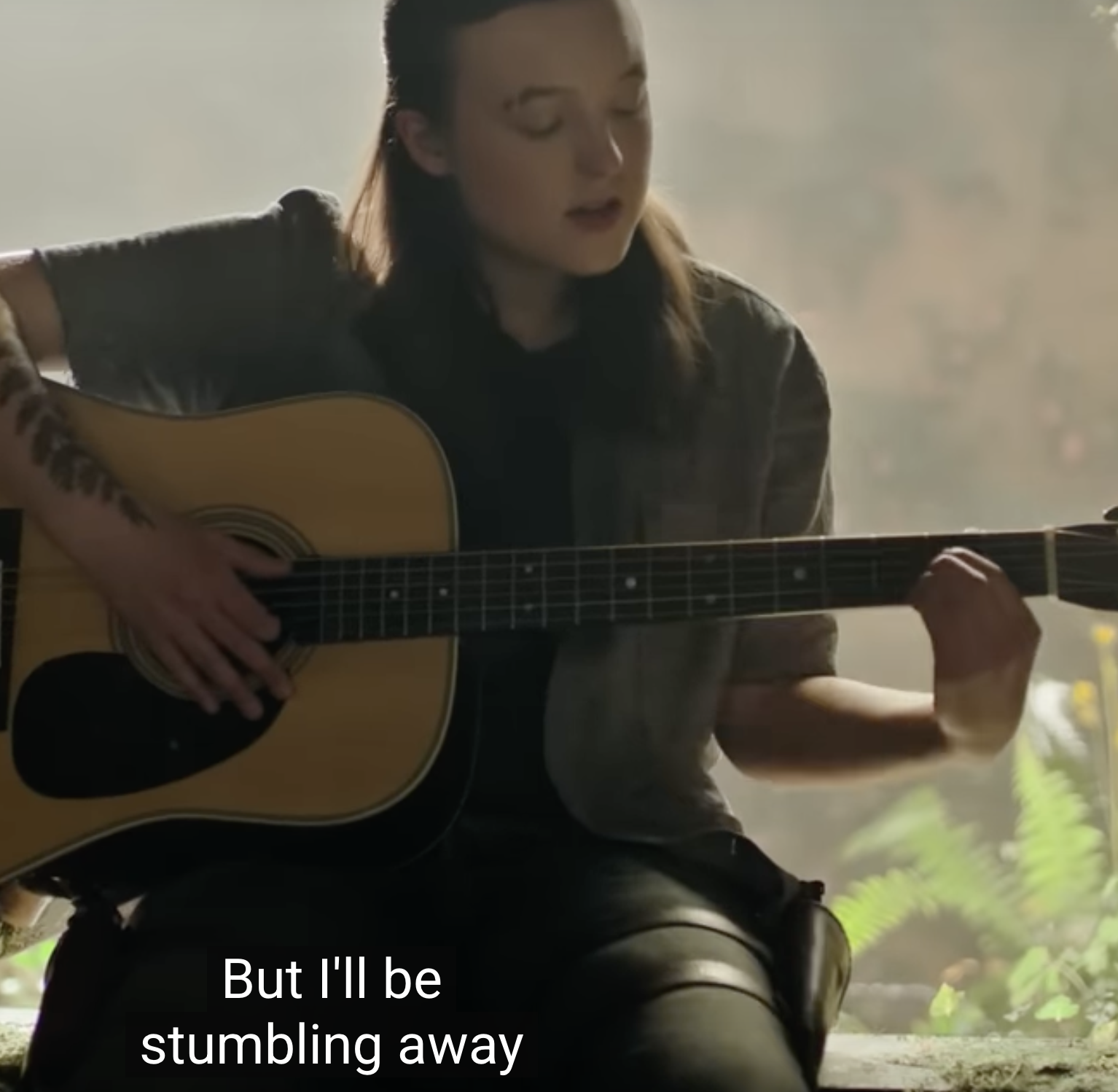 Особенно это видно в конце первого сезона после битвы во время разговора с черной. Вместо того чтобы бежать со всех ног с девкой на руках после того как ебнул главную, этот упырь еле плетется. Во втором сезоне во время осмотра дома бати Элли не ходит нормально, а мнется как аутяра какая то.