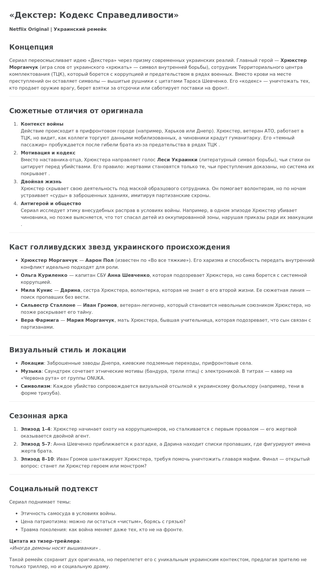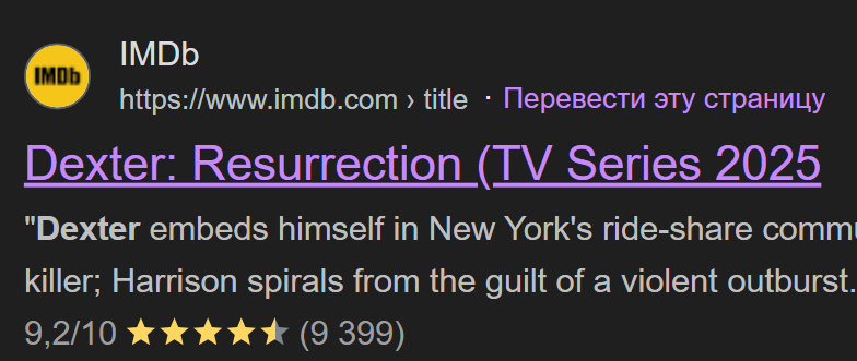 Уже десятый сезон, а Декстер как персонаж почти не развился и до сих пор рефлексирует и ноет про своего попутчика и т.д, даже будучи дедом. Как же это надоело уже, ну было же развитие после четвертого сезона до финала. Персонаж более менее нашел себя и уверенно жил, но вот уже второй сезон продолжений он находится на уровне концовка четвертого сезона. Вся драма его душевных терзаний уже исследована вдоль и в поперёк. ИМХО Декстера тащили сюжет двойной жизни, с ситуациями напряженными когда эти жизни пересекались и одиночные мисси Декстера+ситуации когда он помогал людям. Вся эта срань с сыном, что когда он младенцем был, что тем более взрослым, худшая арка сериала. Надеюсь в конце этого сезона он ебнeт душегуба сыночка и в свободной плавание на несколько сезонов уйдет, мочить маньяков с постоянными копами на хвосте или типа того.