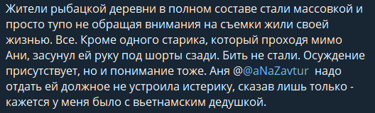Тогда и нехуй было залупаться словом "свежо". Значит, понравился артхаус Романа Михайлова. Я лишь сообщил, что он давно такое снимает, начиная со "Сказки для старых", так что это уже довольно тухло, а не свежо.