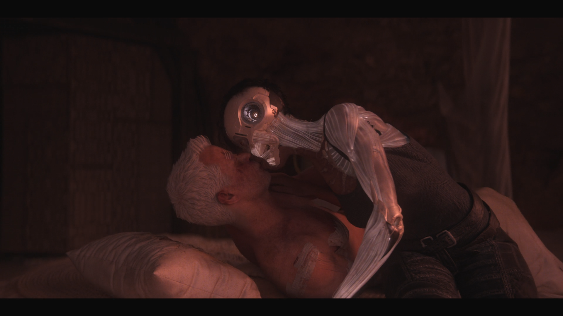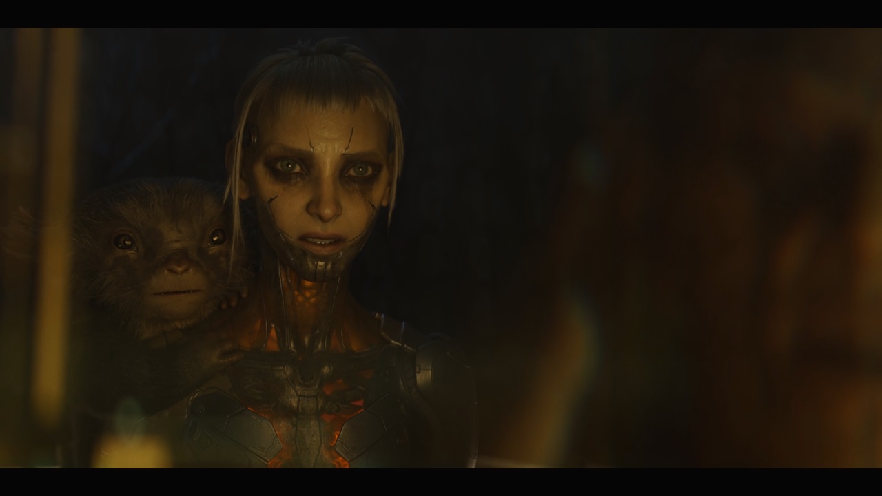 3-й эпизод: первое что реально заслуживает хоть какого-то внимания, как по графону так и по сценарию. Адски страшная мефедроновая наркоманка (вероятно смоделированная со сценаристки), живущая в паучьем гнезде из кабелей прямо посреди открытого космоса - страдает от ПТСД от того, что застрелили её трахаря. Она желает отомстить, как последний рывок в жизни СПИДозницы, которой осталось недолго. Для этого она связывается с расой галактических евреев, для которых торговля - смысл существования, а утрата жизни - потеря инвестиций. Продать им желает Анобтаниум, который вероятно вне карты разведки торгашей, взамен просит Кузькину Мать чтоб атамстить абидчикам, но получает отказ, ведь оружие гоям не положено. Зато положена игра на чувствах самки в отчаяньи. И как и любая солевая шаболда, мечтающая о полноценной жизни с ипотекой и тугосерей - сразу же соглашается вместо ядерной бомбы получить веселого младенца-коалу, потому что Таков Путь™. В итоге после драматичных баталий где в процессе сценаристы прямо устами антагониста поясняют его способности (что есть кринж), и проиграв битву чтоб не умирать без смысла, она добровольно разрешает своему новому питомцу сожрать себя. Милая коала сжирает свою хозяйку со всем кокаином внутре, получая всю её генетическую информацию. Галактический еврей доволен, теперь он может забрать анобтаниум ничего не платя, какая наивность у этих мефедроновых женщин, ой вей.