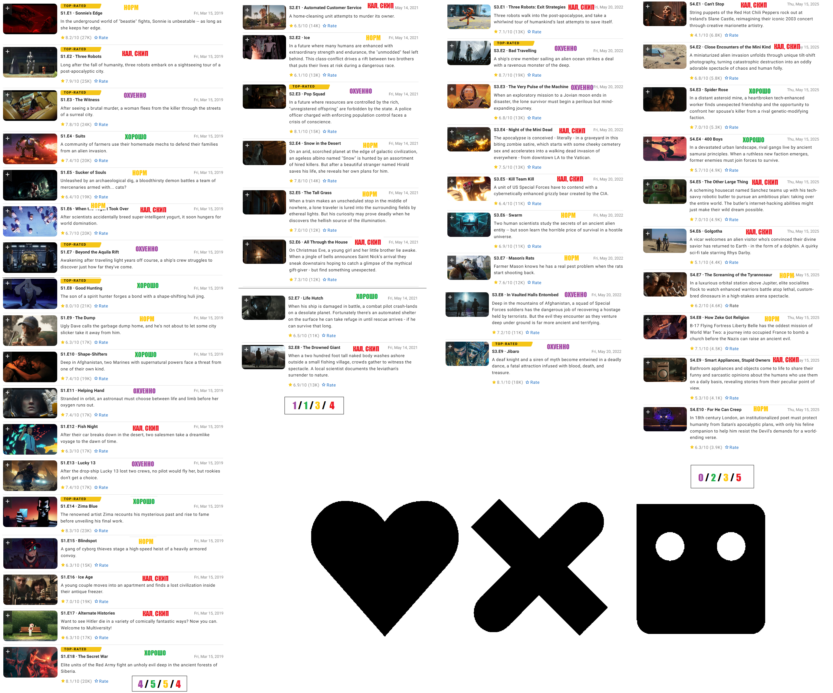 Зик получше треш-фильма с Морец даже получился. Серия про приборы тупая, но в конце дико проиграл, поэтому получает оценку выше. Дорогие и графонистые анимации простенькие и без смысла. Наездникам на динозаврах ставлю оценку меньше, потому что китаехуйня. Лайв экшн какой-то бред с повесточкой про религию.