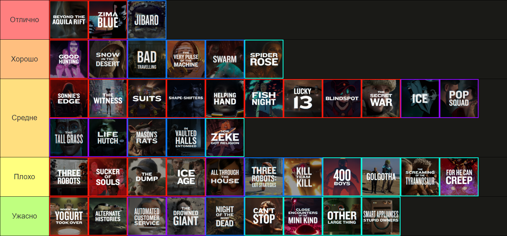 Итого: за весь сезон вышло всего 4 неплохих эпизода, остальное просто несмотрибельно. И даже эти четыре в лучшем случае средние. Трагедия а не сериал, и если бы не сессионный формат из мини-историй, то его бы стоило закрыть с концами. Но так как формат позволяет, пусть готовят. Возможно, это миниатюры для подготовки будущих режисеров и писак, эдакий тренировочный полигон для креативщиков внутри студии, где лучшие таки получат нормальную работу.