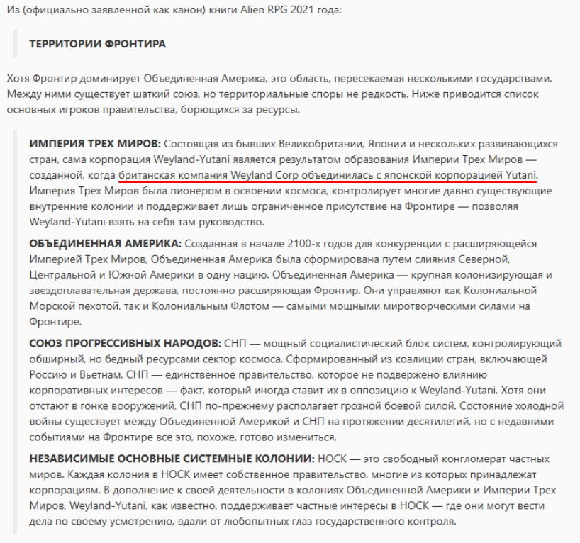 >>3415885 >Никого не смущает, что синт одной корпорации без проблем получает доступ к научному кораблю др. корпорации инф-я которого как бы должна быть секретна...Не говоря уже о том, что по лору только WY делала таких андроидов но на лор всем давно плевать