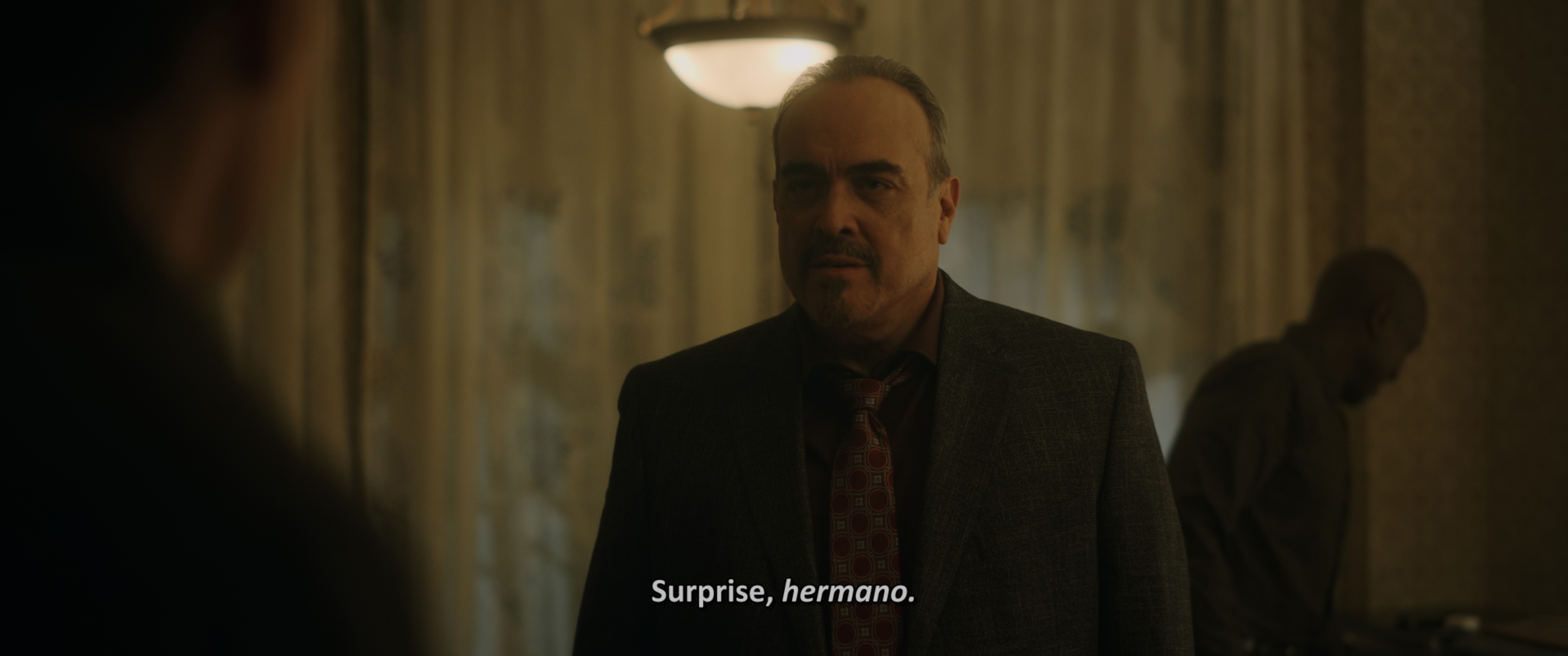 Батиста еще приехал домой к неграм, здесь сплагиатили Хэнка+Уолта из БрБа, даже фразу типа "tread lightly" вставили, ну когда те в гараже базарили