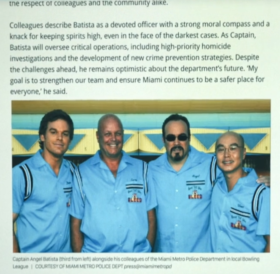 >Декстер был социоблядью с пончиками, по-любому все писюхи отдела с ним сфоткались, потом появился фейсбук и все они их туда загрузили. В нью блад уже наше время, соцсети во всю развиты, очевидно его ебало много раз фоткали и оно в сети.
