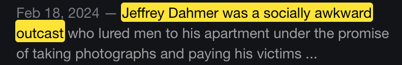 >>3364707 Хуя перефорс. Как раз-таки чмони инцелы и становятся маньяками. Гин Эд, Эллиот Роджер, Эд Кемпер, Чикатило, Дамер и сотни других примеров, это всегда замкнутая застенчивая инцельная чмоня, обиженная на весь мир.