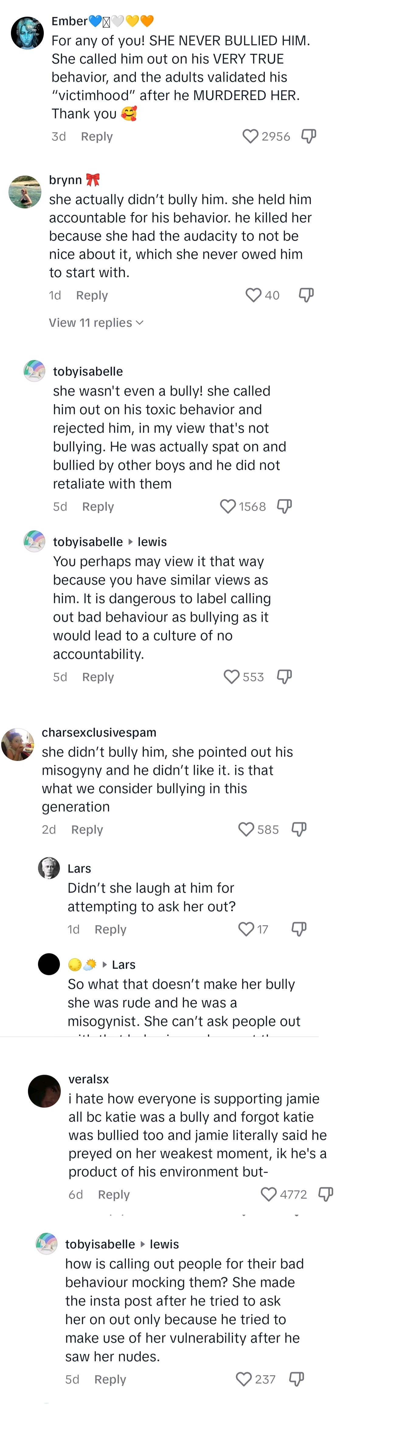 >>3363857 https://www.dailyrecord.co.uk/entertainment/netflixs-adolescence-inspired-three-tragic-34872793 > While Graham specifically mentions the murder of Brianna Ghey in 2023, he does not specify the other two cases. > However, they may relate to the tragic killing of 12 year old Ava White in Liverpool by a 15-year-old after a dispute over a social media video in 2021, and the death of 15 year old Elianne Andam