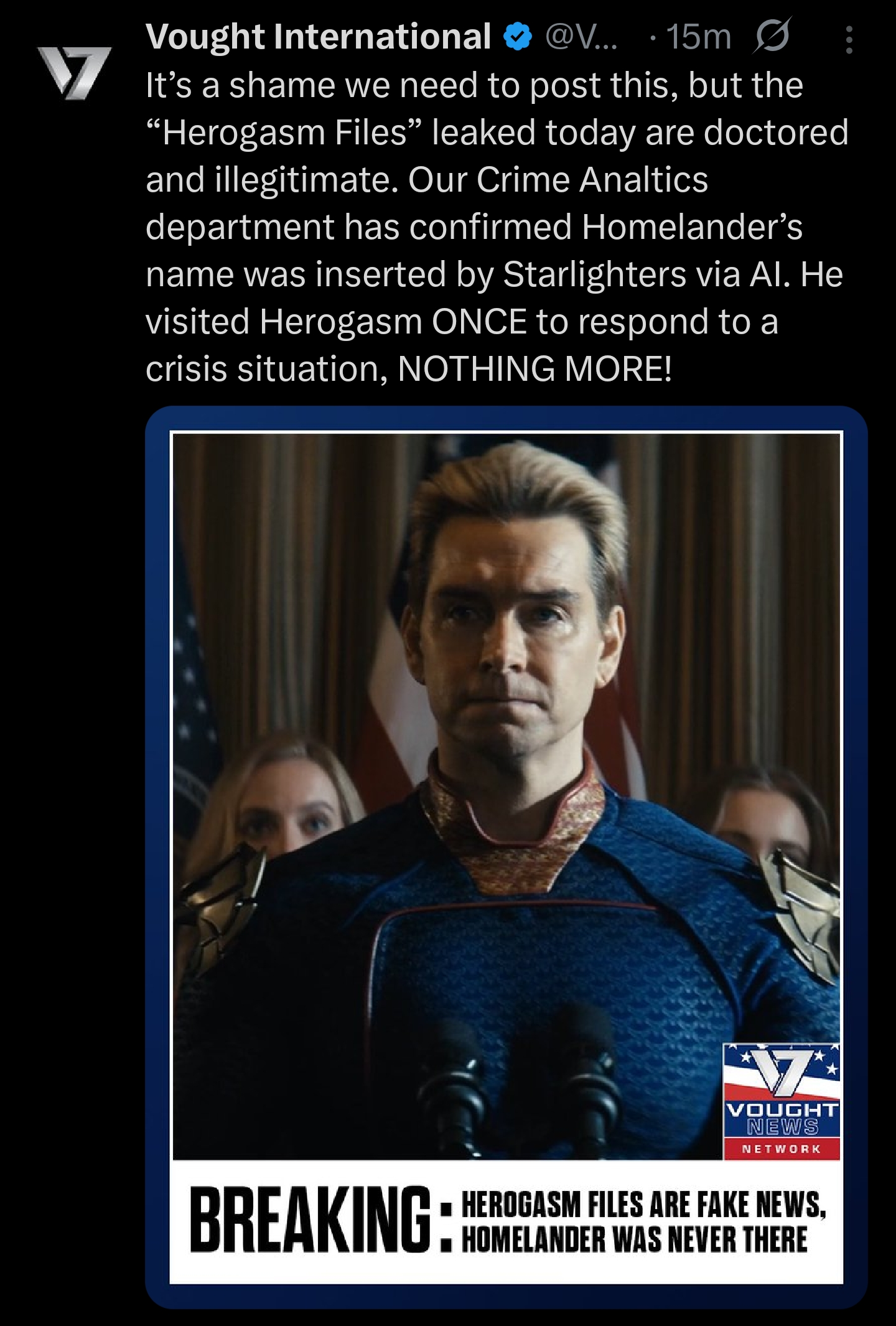 В 5 сезоне небось с райаном и хоумлендером объединится и станет супер злодеем и это будет весь плот твист, и будет опять 7 серий дрочни и в 8й супер файт