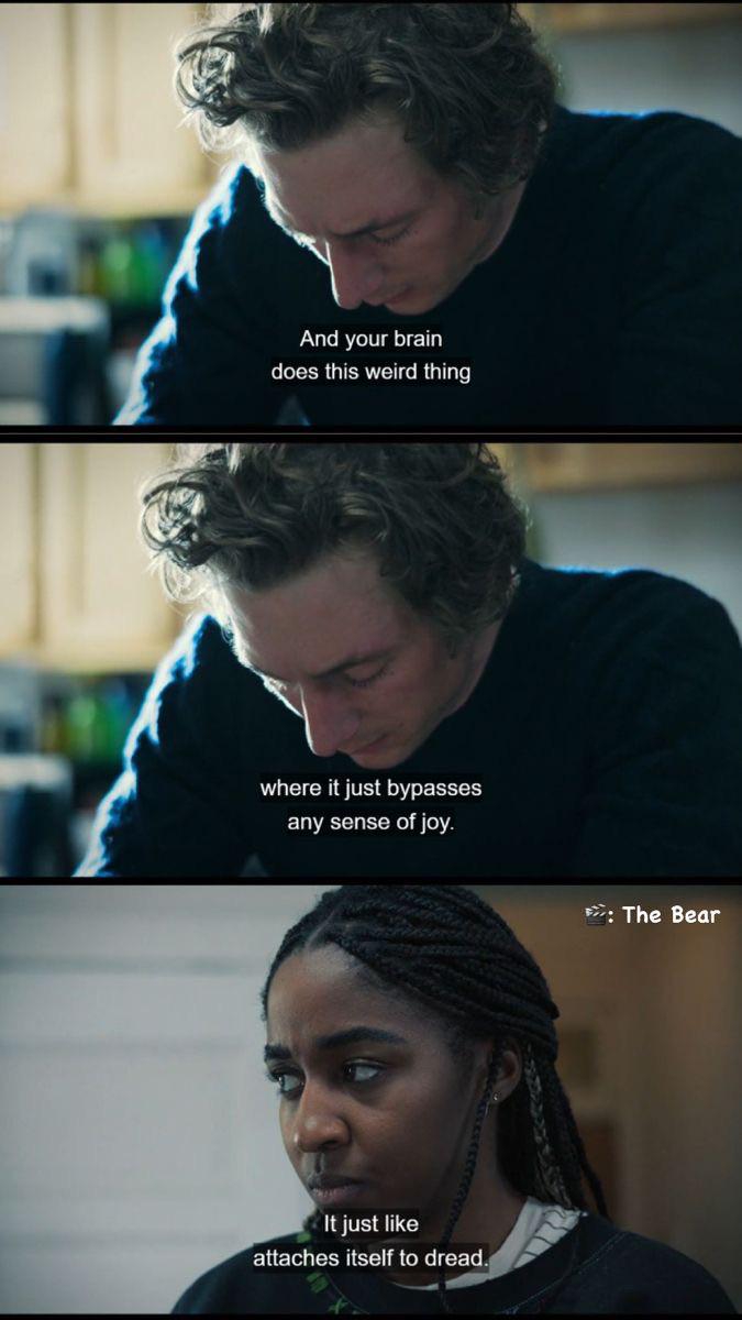 Отсюда возникает структурная проблема. Большинство сиричей за последние условно пять лет – это тупа полнометражные фильмы раздутые по хронометражу до 6-8 эпизодов. Вспомни вышеназванные тобой Провод или Ломать Плохо. Там КАЖДАЯ серия имеет четкую структуру, какую свою небольшую арку, тему которая раскрывается именно в этом эпизоде. Потому что раньше не было такого понятия как бинж вотчинг - когда ты залпом проглатываешь сезон будто тебе его на лопату навалили. Наоборот ты раз в неделю садился и смотрел по одному эпизоду. Начиная со второго сезона Медведя тоже идёт уход в эту забытую технологию древних с чёткой посерийной структурой. В этой серии мы отправялем нигру в Копенгаген подучить делать десерты. В этой серии мы обучаем кузена Ричи работе в зале с клиентами. Или вот держи вместо привычных получасовой серии целый час про рождественский ужин с родственниками. Или вот тебе целая серия с меланхоличным настроем под музыку Трента Резнора и Атикуса Роса с минимумом диалогов.