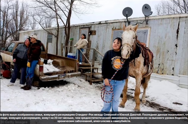 > Во всех округах, где ожидаемая продолжительность жизни составляет 60 лет или ниже, расположены резервации коренных американцев, которые уже давно страдают от высокого уровня бедности, алкоголизма, самоубийств, наркомании и депрессии, что повышает риск ранней смерти.