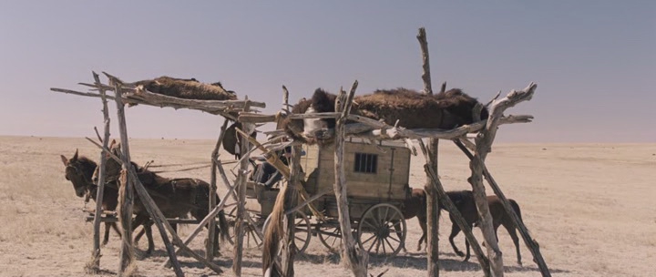 Почитал срач - хуле спорить, в хорошем фильме зритель всегда находит что то своё и не всегда оно будет соответствовать авторскому замыслу ибо у каждого своё видение и свой опыт, на то оно и кино. Как по мне - история двух баб. Первая. основная - баба с прицепом бежит от закона, само собой туда где закона нет в надежде что тут её не достанут. Следуя древнему женскому инстинкту, попав в тяжелые обстоятельства, она хочет найти себе того кто её обеспечит, а что-б туда добраться ей нужен проводник который временно возьмёт на себя заботу о ней и её сынульке. Немного пообвыкшись в этих новых для себя местах она начинает понимать что народ тут не соответствует её требованиям и задачам, так как неплохо устраиваются здесь только отбитые отморозки, поэтому сесть на шею своему бывшему мужу вряд ли удастся, а единственный мужчина который более-менее подходил бы для неё (проводник) погиб. Поэтому маленько подумав она решила ехать дальше в Калифорнию - может там чёта выгорит. Другая баба, мормонка, попала к индейцам и решила остаться с ними, следуя опять таки древнему женскому инстинкту, так как её мужик теперь не какой-нибудь омеган а настоящий вождь банды дикарей, т.е. наиболее подходящий к данным условиям вариант. Как по мне - фильму не хватает показа дикой природы, эпических масштабов природных ландшафтов - жанр вестерна как бы к этому располагает, человек среди дикой природы и против диких людей.