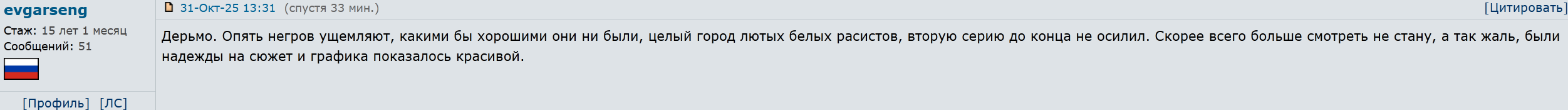 >>3444690 Я спокойно отношусь к неграм и понимаю, что сейчас без повестки никуда, но меру же надо знать. Вся серия буквально состоит из злых бесчувственных белых, которые угнетают умных и сочувствующих чёрных с тонкой душевной организацией. Я понял, что чёрные угнетены, можно мне в ебало этим не тыкать каждую минуту? Можно что-то кроме угнетения чёрных показать? Например, может быть, Пеннивайза?