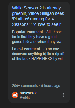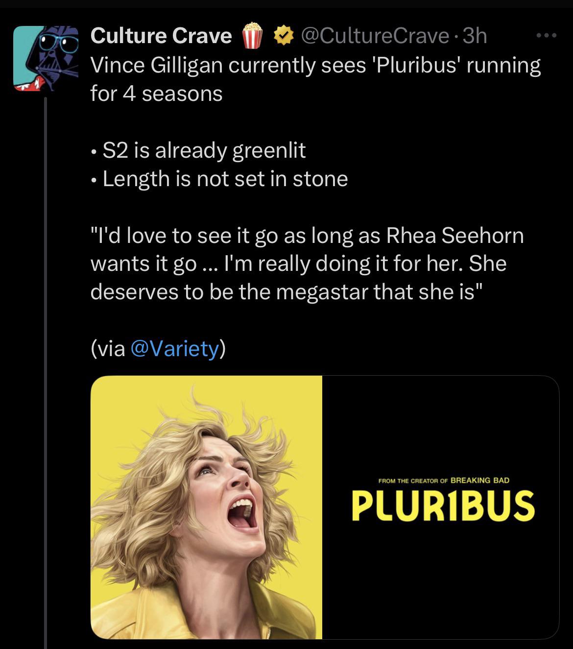 Общий тред для обсуждения сериалов «Во все тяжкие» и «Лучше звоните Солу», а также грядущего «Плурибуса», премьера которого назначена на 7 ноября 2025.