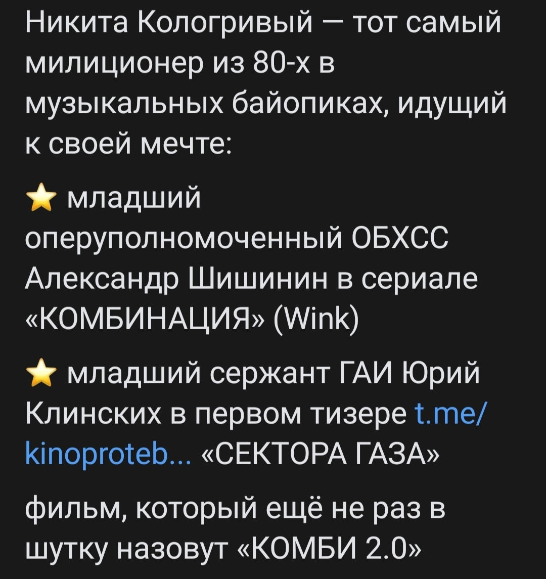 показали тизер — выглядит как «КОМБИНАЦИЯ-2»: милиционер покоряет музыкальную сцену.