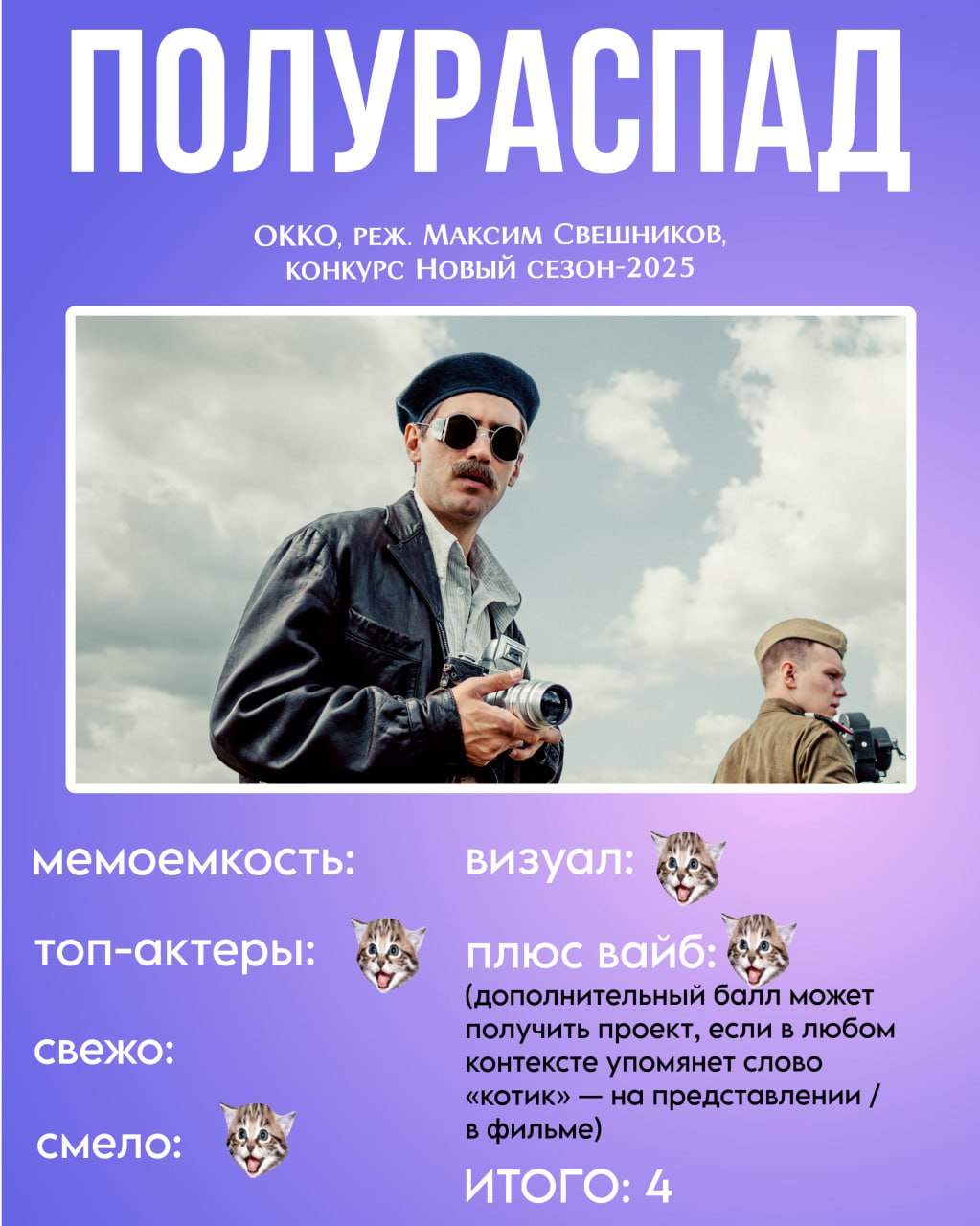 >>3431958 🔵 давайте уже честно признаем: Okko — это король премиального и фестивального контента по состоянию на 2025-й год. Они сделали работу за всех на «Пилоте» с сериалом «ДЫШИ», взвинтили ставки на прошлом «НОВОМ СЕЗОНЕ» с «АУТСОРСОМ». а в этом году все ставят на их «ПОЛУРАСПАД» и «ВСТАТЬ НА НОГИ».