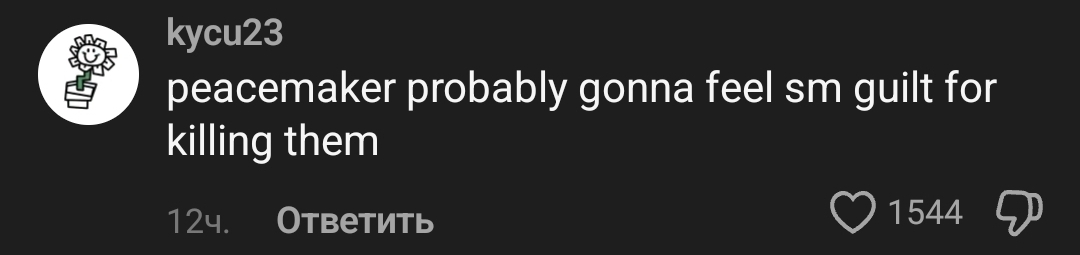 Чето пока второй сезон разочаровывает, химии между Виджиланте и Писмейкером нет больше, самого Виджиланте зачем постригли как карикатурного зумерка с этой брокколи завивкой, да и ведет он себя не как смешной аутист психопат, а как просто аутист. Твист со СТРАШНОЙ ВСЕЛЕННОЙ БЕЛЫХ СУПРЕМАТИСТОВ все выкупили сразу, да и это уже моветон в 2025 делать такую кринж сжв хуйню