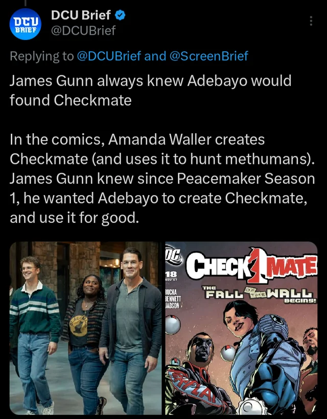 >>3439417 Ну типа новая организация связанная с героями. Как банда справедливости или аргус. В комиксах это плохая организация от Уоллер, тут видимо будет хорошая от её дочки.