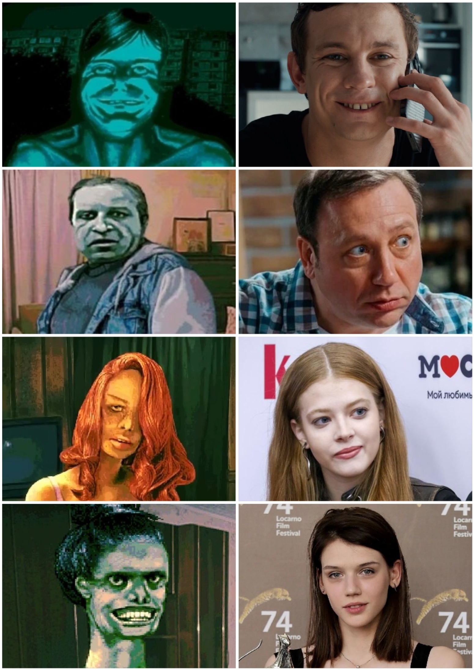 Ну что ж, вышла моя вторая киноработа с изменённым лицом. Это уже фильмография, как никак. Похоже, во втором случае работа выполнена тоньше, но, всё-таки, чувствуется какое-то внутреннее сопротивление исполнителей. Ребят, не переживайте, работайте - это ж всё только для того, чтобы Родине хорошо было! А ради неё, ни то что лицо - пол поменять не грех! Чтобы мне тут не пришили пропаганду ВКПБ (или ГКЧП? МГТС? СДВГ? Или какие там четыре согласные?) спешу уточнить, что под сменой пола имею в виду лишь замену паркета на ламинат - на большее ни-ни! И как сказал поэт: «”Чтоб сладок был Отечества нам дым, мы за еблом не постоим!”