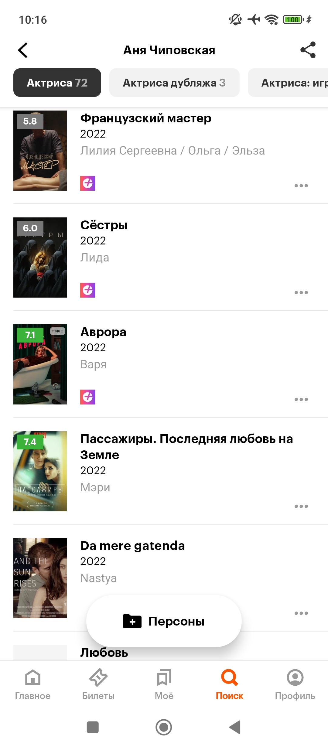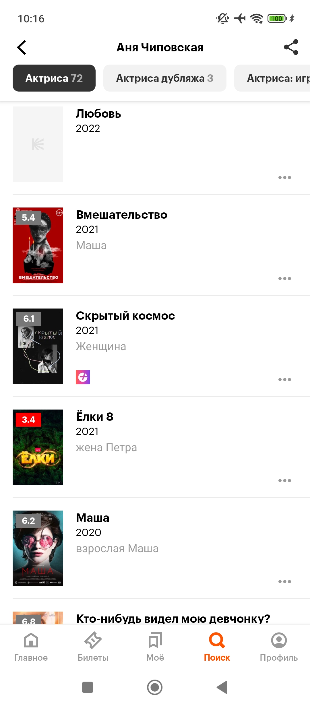 >>3436680 Фильмография на табло. Чиповская чрезвычайно востребована и без работы не сидит. Как-то нихуя не бьётся с тезисом: > 5 лет уже не снимается нигде. Снимается и дохуя.