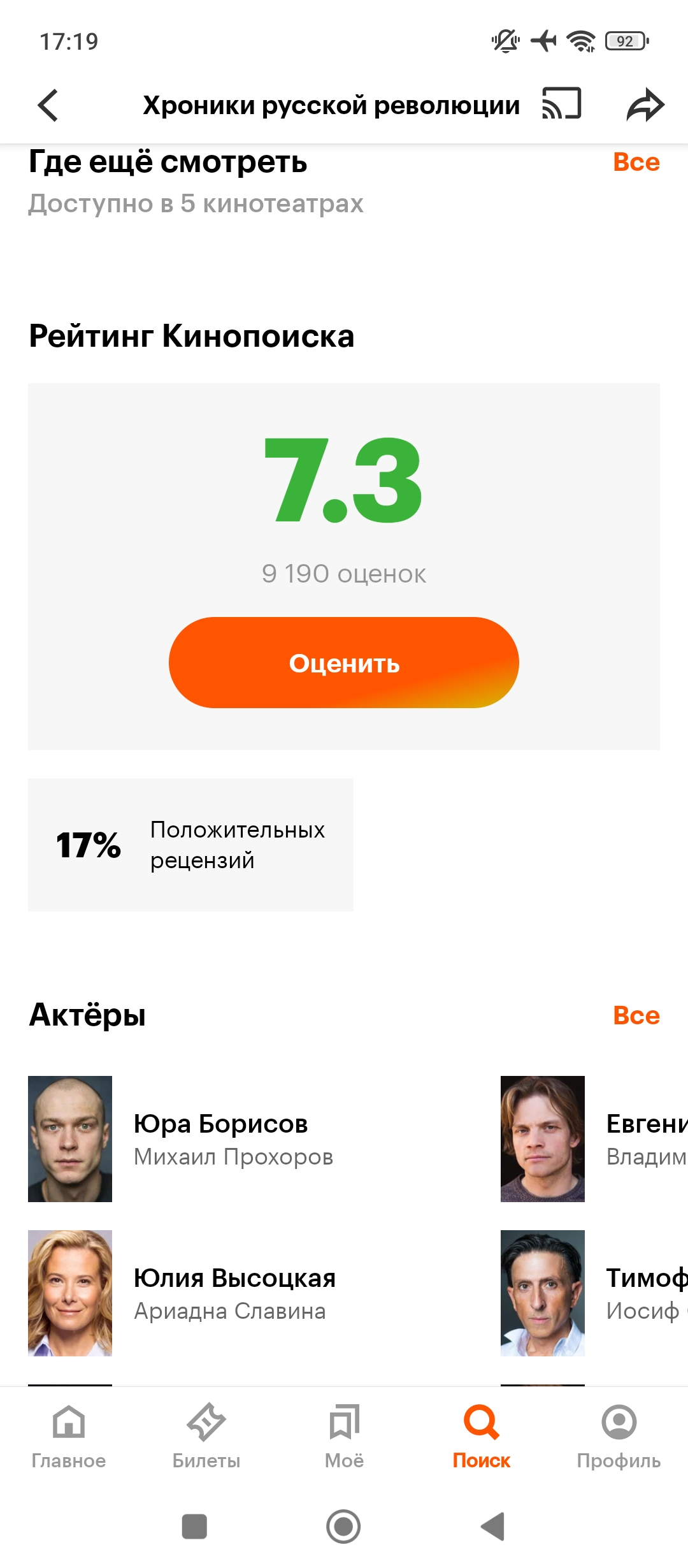 Вчера видел эту же пару в высириче Кончаловского. Вот это совпадение. Актриса, кстати, бесявое уёбище. Так мало видел, а уже ненавижу её. К Юре Борисову вопросов нет. Он хотя бы обаятельный, хоть и не менее бездарен.