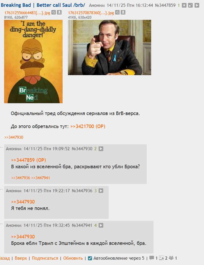 >>3448783 >Серич не про фантастику, серич про character study, я это пытался донести. Анон постом выше справился лучше с этой задачей. >>3449091 А это что? Как минимум ты тогда категоричный школьный долбоеб, путающий жанры и художественные методы. character study это не жанр. вернулись к началу. и вот такая хуйня тут ошивается и имеет мнение. вот не удивлюсь что вот это повесткозависимое чмо это ты же>>3449093 >заболел воук шизой Шел 2026, уебаны в тв все еще рассужали о воук