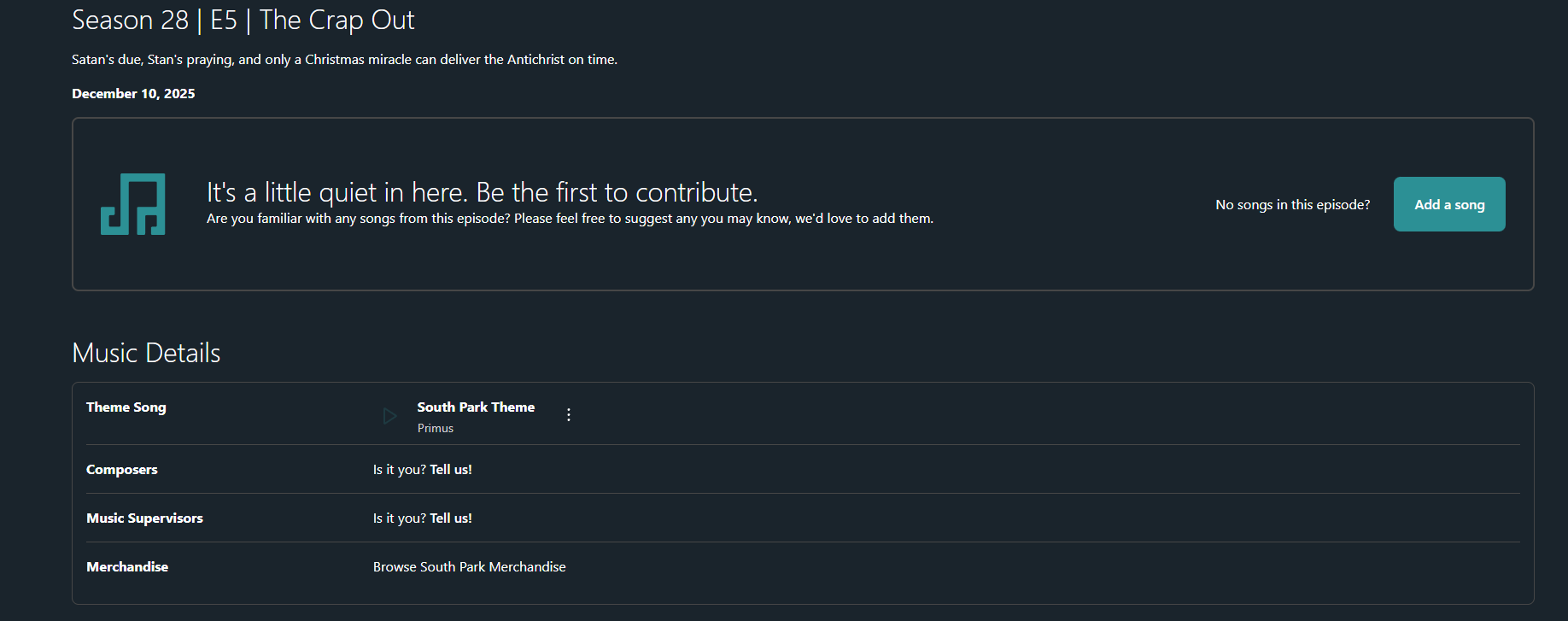 а что за музыка под которую танцует трампыпа на похоронах в последней серии? весёлая такая рождественская мелодия. это откуда-то или опять трей сочинил на коленке? шазам не помог.
