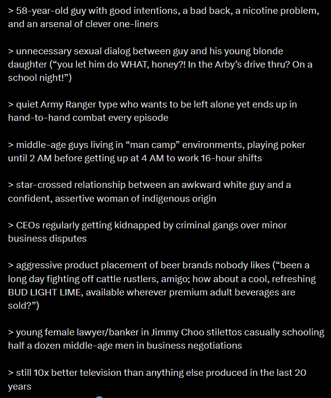 >>3466423 Начинал у него пару сериалов и смотрел оригинальный йеллоустоун, хватило на 3 сезона до того как понял что ебаная дойка которая будет продолжаться до последней карен.