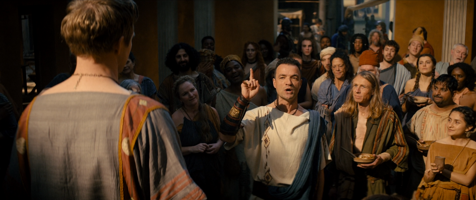 У меня такое чувство, что сценаристы такие "Если мы в каждой серии будем добавлять кишки, кровь и песок на арене, то зрителю такое надоест. А вот кровь и переулок, это круто" Но нет, именно этим сериал и цепляет. Хлеба и зрелищ зрителю.