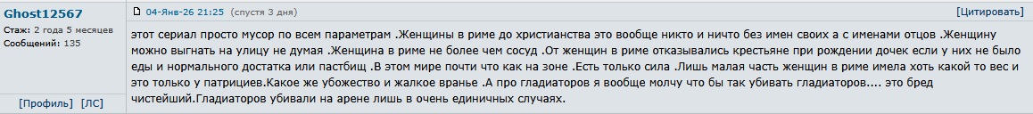Отсмотрел весь контент по Спартаку, а чёт не понимаю. "Толпа нас будет любить и обожать..." но как-то от этой толпы нам не показывают профитов, будь то защита от пиздюлей в подворотне, подарки, деньги или даже на улице "автограф" не попросят. "Этот гладиатор станет чемпионом и наш дом возвысится..." и в каждом сезоне есть по чемпиону. Ганник, Крикс, Спартак, Ахилия. И чёт опять-же никаких ништяков за обладание чемпионом. Пиздюли, неуважение, а могут просто динамить с играми. С одной стороны чемпион у всех на слуху, город только о нём и говорит и толпа его хочет, с другой на игры не пускают и всё тут.