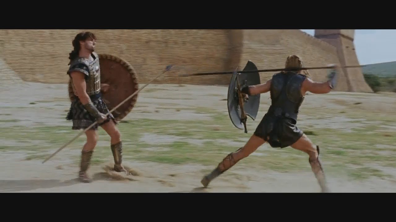 >Сцена с горящими воротами >Цезарь становится в самую обычную негероическую стойку, делает совершенно не пафосное лицо и так же не пафосно произносит: "Думаю вам пора бежать!" >Самый обычный такой непафосный умный паренек, патриот своей Родины, не то что этот Ахиллес - пафос на пафосе и пафосом погоняет.