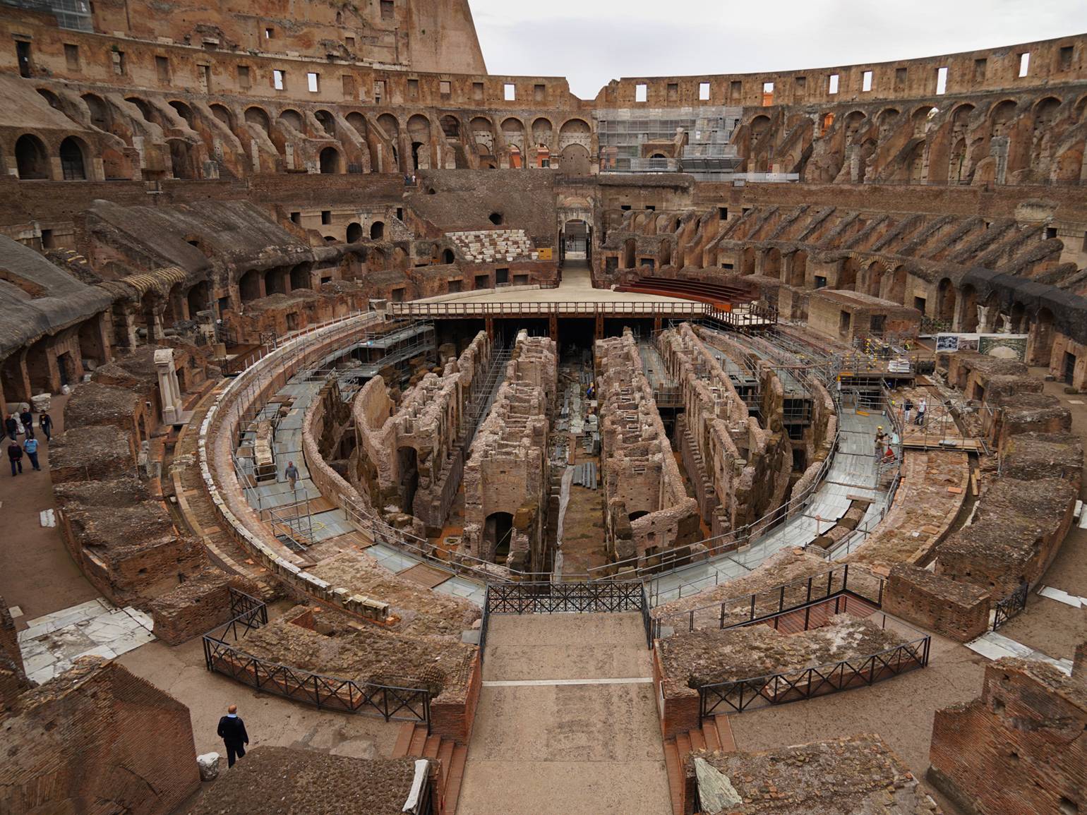 Гладиторские бои в Риме - олимпийские игры+театр+коррида. Действительно были массовые, косплеили разные битвы (как в фильме Риддли Скотта) и как в рестлинге более менее следовали сценарию. От травм конечно умирали, но это больше случайность. А ну и также обожали всякие драки с тиграми, львами и теми животными, которых удалось найти, но гладиатор был на это натренирован, он обычно побеждал. А ещё на крупных аренах пиздец как заморачивались по поводу декораций и механизмов всяких, отдельный вид искусства. На пике колизей например, как видишь уровень арены там, где ворота, внизу - технические помещения.