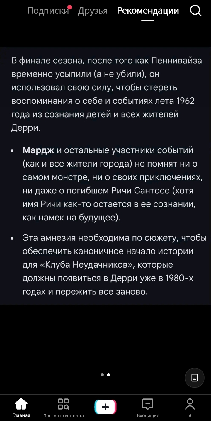 Вот фильмы оно которые выходили не так давно -- вот это было неплохо. Но то было снято по сценарию старого деда, а не розоволосой активистки. И пахло хотя бы намеком на попытку вписать реальность в ужастик, в отличие от детских фантазий на основе коротких видосиков про которые подростки выпустят еще пачку коротких видосиков под пердящие хард басики фонк или че там модно сейчас