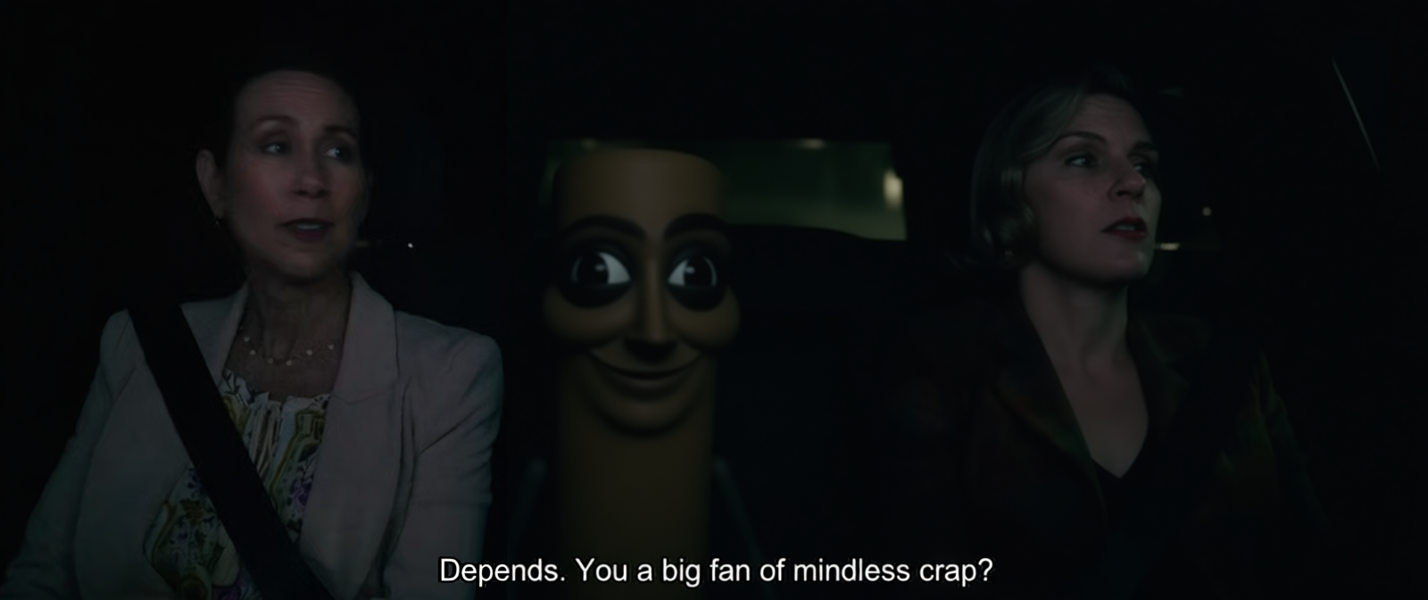 Что касается сюжета, то он скорее плох. Даже не могу назвать его средним или банальным, он буквально хуевый. Интересные персонажи? Нет. Ебарь-террорист на французе, неиронично, лучший персонаж. Сабплот о ее писательсткой деятельности? Все эти жирушные фанфики и ДЕТСКАЯ ТРАВМА, из-за которой она поменяла гендер протаногиста в книге? Это интересно? Да нет, тоже хуйня. Может это хороший сай-фай, раз это является основной темой, на которую уделено немало зрительского времени? Во второй серии нам объясняют как устроен этот инопланетный организм, спустя еще 7 серий мы не узнаем ничего нового. Более того, подача настолько...за неимением другого слова, НЕРЕЛИСТИЧНАЯ. Имею в виду, что ты не веришь в происходящее, потому что все окружающие люди - нпс без характера, а Зося, в свою очередь, куда более "очеловечена": отпускает шутки, впоминает детство, наслаждается пейзажами, сопереживает главной героине и т.д. То бишь контраст между ней и всеми остальными бросается в глаза, несмотря на то, что они должны быть одним организмом. Даже Кэрол видит личность лишь в ней одной. Это нужно исключительно для хоть какого-то продвижения сюжета, но из-за этого полностью разваливается весь премис "коллективного сознания". Сюжет, с точки зрения подачи и развития, скорее напоминает очередной "АИ потихоньку обретает осознание", но тут никак на это не намекают, так что выглядит искусственно и притянуто, без каких-либо обоснований. Да и в целом нужно много во что ПОВЕРИТЬ НЕ ЗАДАВАЯ ВОПРОСОВ, всякие там "мы ничего не можем сделать без твоего согласия", "мы не будем срывать яблоки/культивировать растения", "нам важно, чтобы ты была счастлива" (почему?), "нам нужно от тебя отдохнуть" и прочее. Также не понимаю, зачем им вообще нужен контроль над оставшимися 12 людьми?