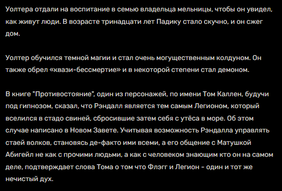 >>3469007 Я всех деталей не вспомню, но суть в том, что верхушка антагониста наделила властью всякий сброд, чтобы подчинить себе. Купол - это аллегория вообще на человечество, когда ты не можешь вырваться из всего этого шизобреда. Вообще Кинг тот еще русофоб американофоб, дрочащий на СССР США 1960 годов. >>3469008 Я дропнул на первых 15 минут, даже смотреть не стал. Соевая хуета.