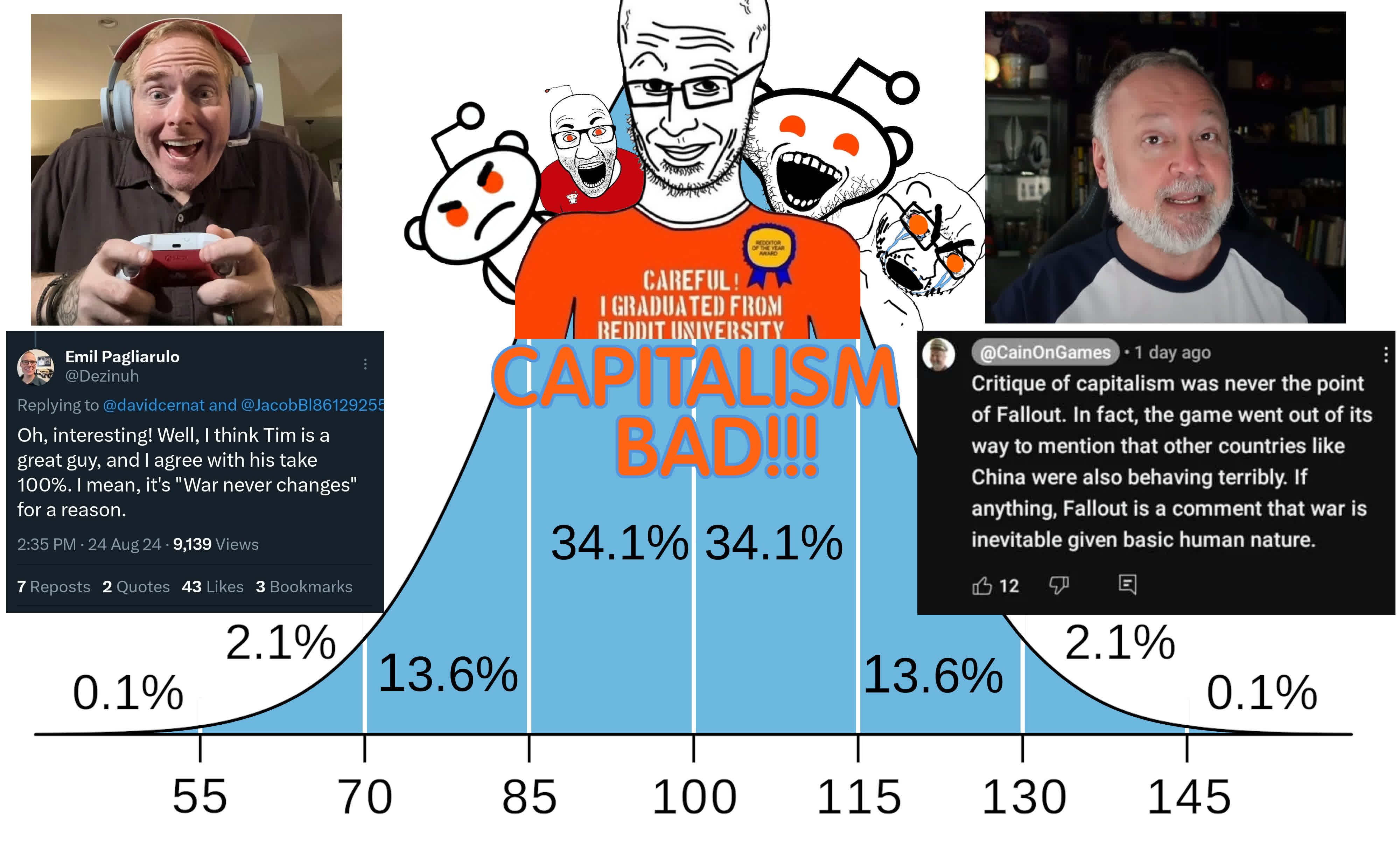 >>3470486 >тыкали пальцем в экран с пикрил ёблами и скупали мерч Ну да, вроде и так очевидно. Беседка хочет чтобы Фоллач был атракционом клоунским как Бордерлэндс, где ничего не имеет значения. Где любые серьезные темы сведены до клоунады и сатиры. Где никакого развития быть не должно, всегда должен быть пиздец и разруха. Собственно тот же НКР из канона вывели потому что сценаристам показалось что пустошь слишком цивилизованная, а нужен атракцион слоп для коллекционеров Фанкопоп. Почти все современное медиа и большинство современных франшиз идут по этому пути. Средний уровень развития типичного зрителя Амазон и Нетфлик это неироничный уровень тупоголовой обезьяны, которая не способна понять сюжет сложнее Мстителей, и сконцентрировать внимание больше чем на 10 секунд без телефона перед ебалом с открытым тик-током. Через 10 лет тебе даже этот сериал покажется гениальным на фоне экранизации ТЕС которую Тодд Говард обязательно слепит учитывая успех Слопаута
