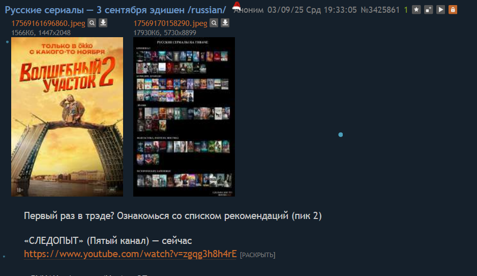 >>3470641 >пикабушник Никогда там не сидел. Советуешь? >И для чего? Чтобы не было нагромождения текста >Любая по теме треда, глупенький, не видел прошлые шапки? Постер русского сериала оказывается не относится к теме "Русские сериалы" ✍️