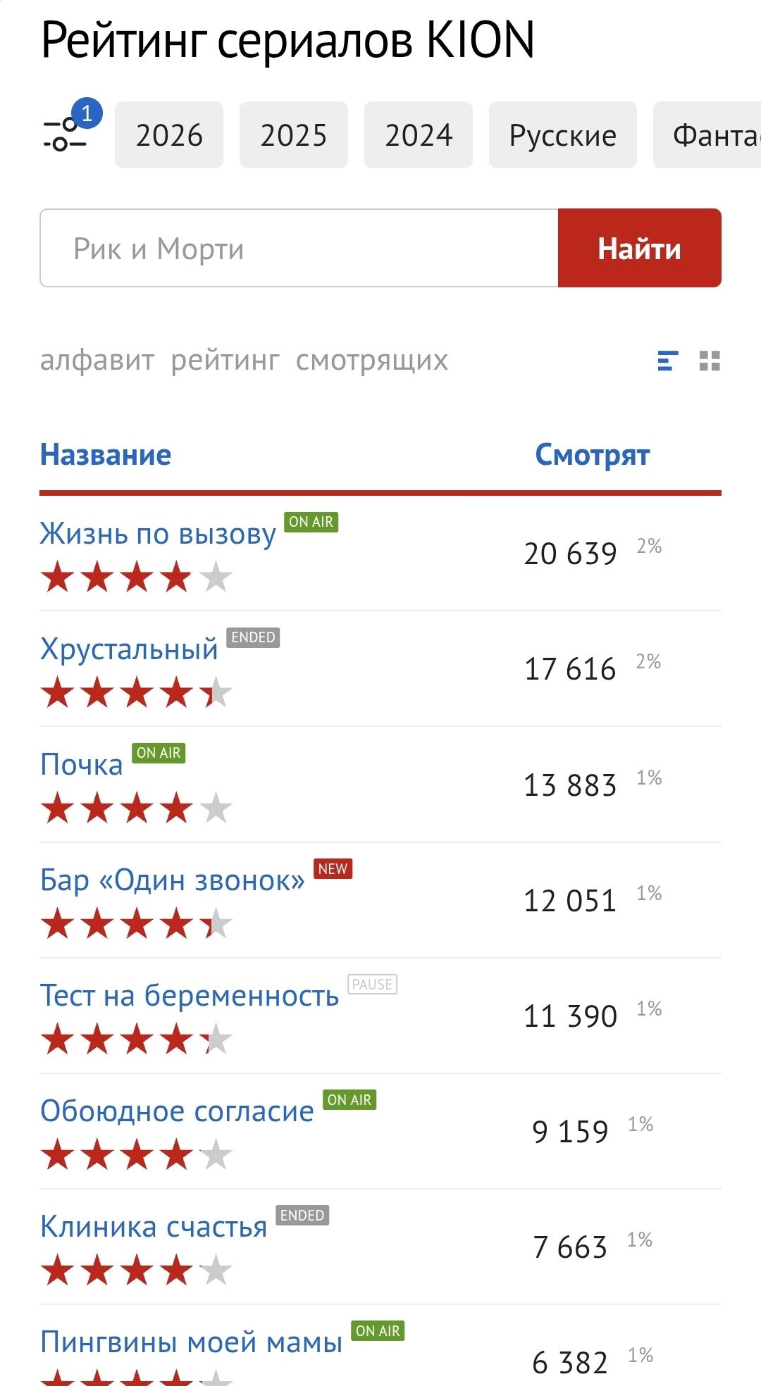 пришла первая статистика по просмотрам — пока не детальная от самого Wink, а с подсчётами от Кинопоиска: