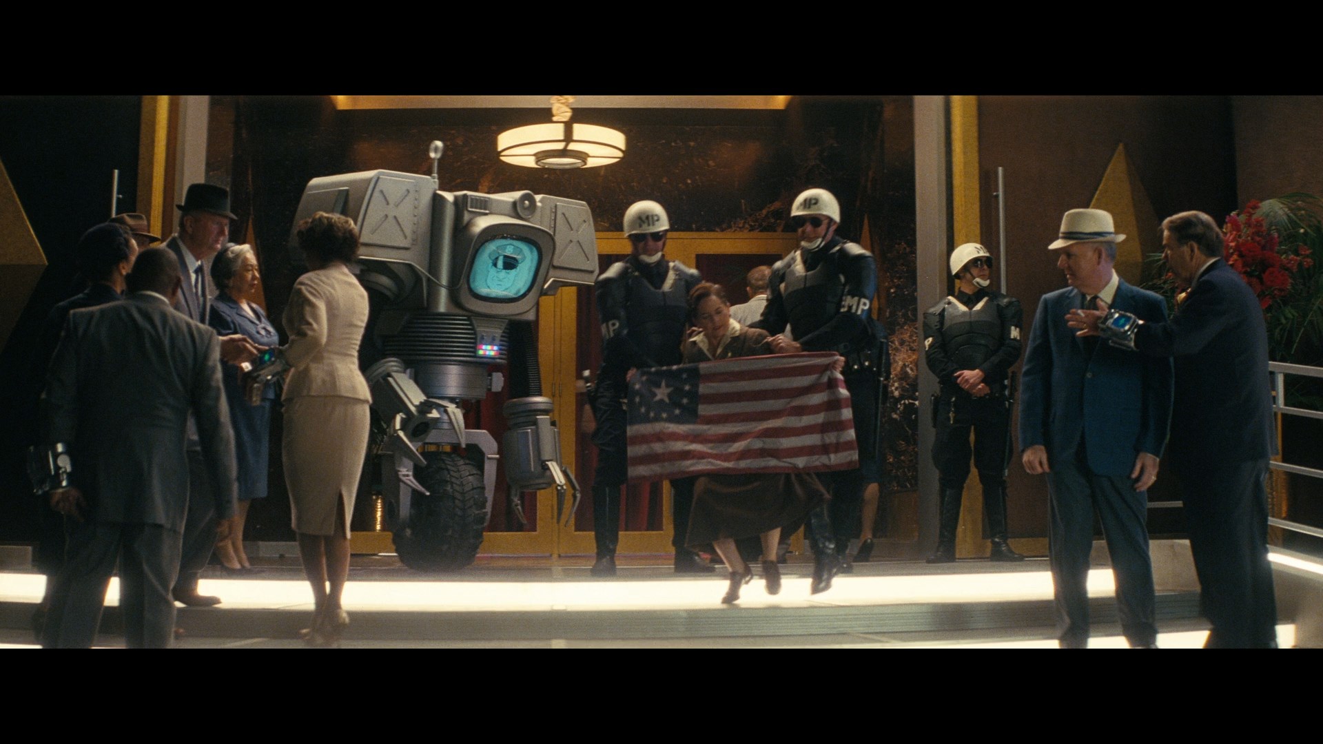 И он встречает Фисто! Важно отметить, что Фисто — это протектрон из эпохи Fallout 3, а не из Fallout 4 (которого мы мельком увидели на заднем плане в предвоенной сцене первого сезона, где выгуливали собак возле штаб-квартиры VT). Сериал снова демонстрирует одновременное существование элементов дизайна из всех трёх эпох Fallout (классической, Gamebryo и Creation), что мне очень нравится.