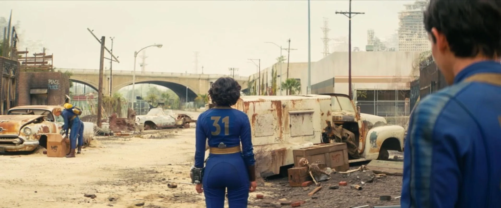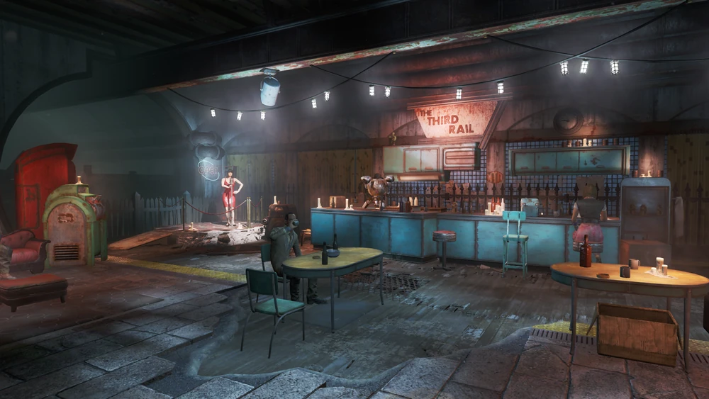 В игре есть отсылка к тому, как игроки исследуют довоенные руины и находят трупы, хранящие истории о том, кем они были раньше: некоторые обитатели V31 узнают коллег, все еще сидящих за своими столами, предположительно, по их именным табличкам.