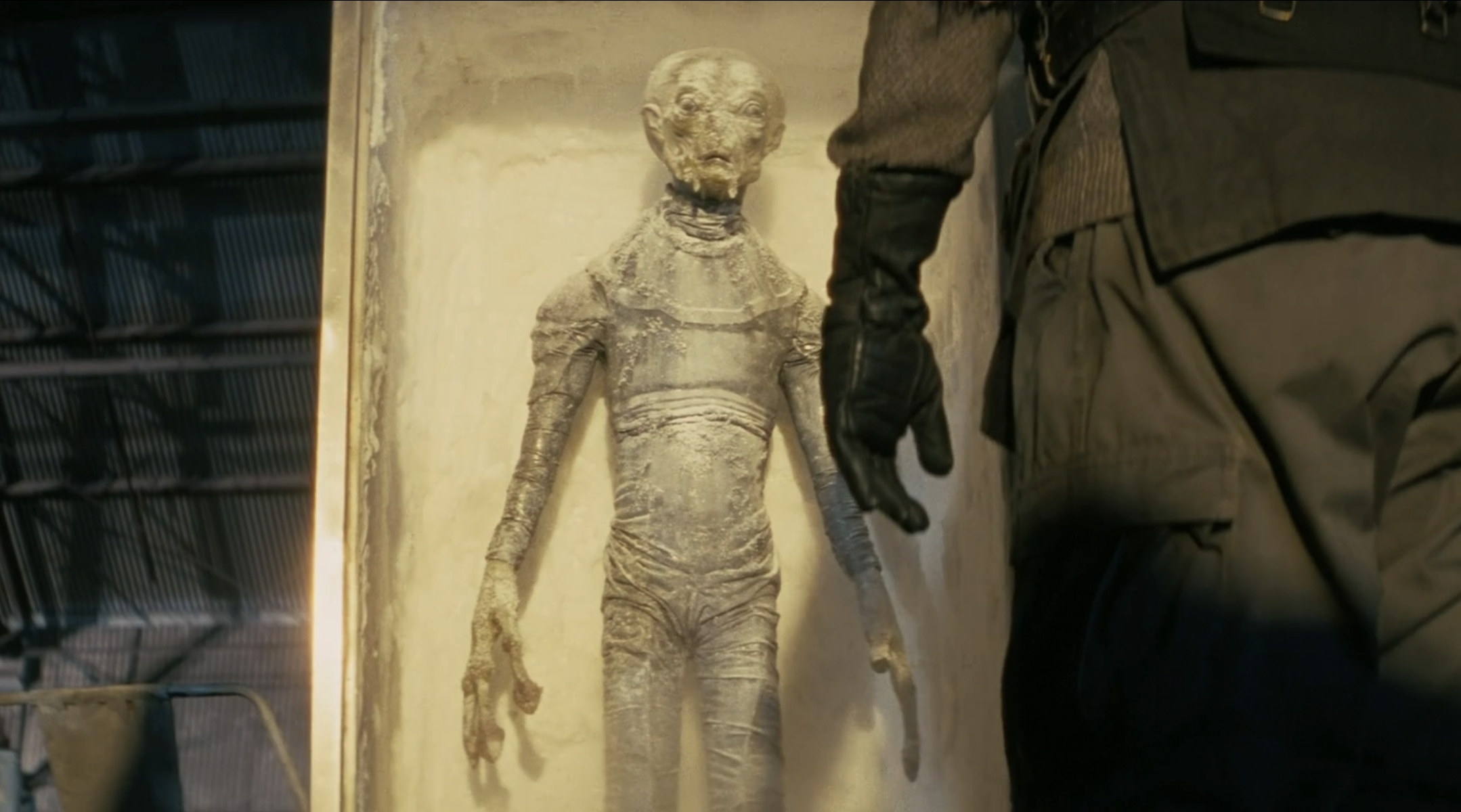Как ни странно, в тот момент у Купера был поднят визор, так что, может быть, Хаус просто выбрал странный ракурс, из-за которого существо едва попало в кадр?