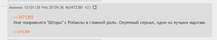 >>3473059 (OP) По наводке одного анона навернул сериал Шторм с Робаком (о нём была мини-дискуссия как раз), Михалковой и челом из последних фильмов Балабанова. Навернул запоем - давненько такого не было. Сериал хороший. Анону спасибо.