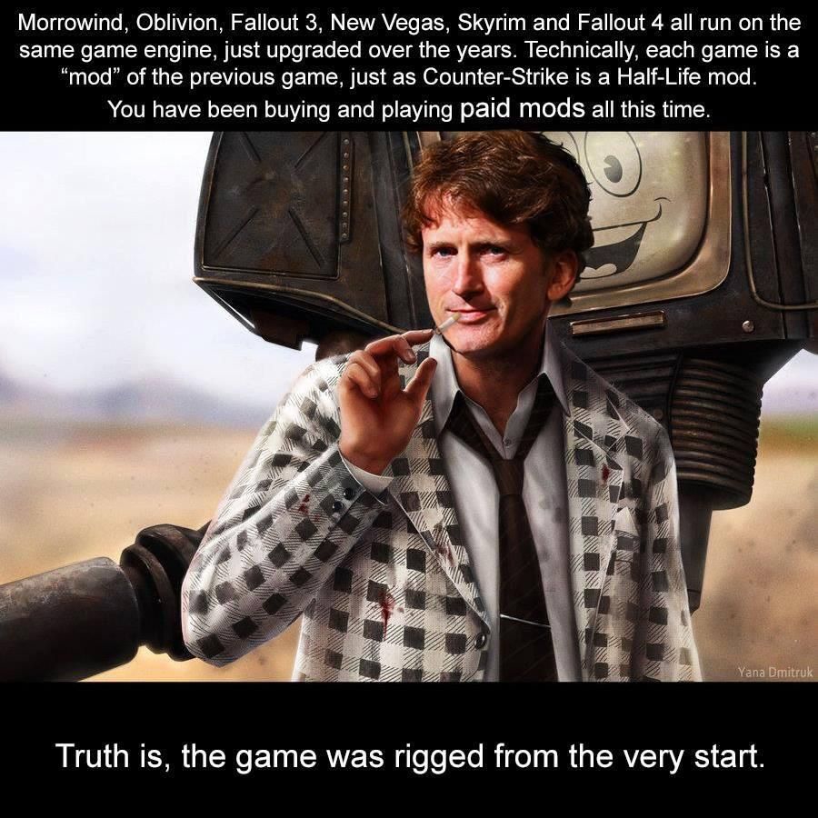 @monkey кто по твоему мнению прав - фанаты игр Тодда Говарда или фанаты ньювегаса? фанаты ньювегаса однозначно правы, там хотя бы выборы реальные, карма влияет, а не линейный шутер с перками на каждый чих.