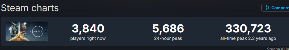 >>3474657 Старфилд конечно кал, но думать что в него играет в мире только 2к людей сейчас это глупость полная