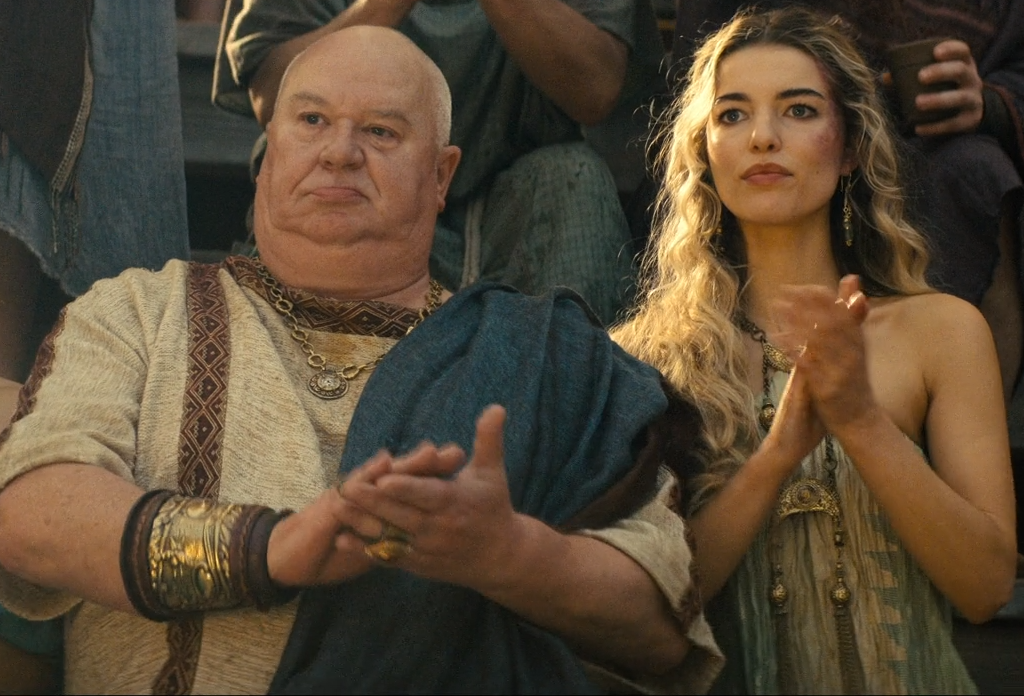 И конечно-же, как плохо всё это смотрится, когда в кадре Цезарь и прочие исторические личности. К актёру претензий нет, но вот этот Цезарь, который тот самый Цезарь и его в разных интерпретациях видел в других сериалах, где он серьёзный дед 50-55 лет, а тут он молодой выёбистый блондинчик... ну вот прям не нужна эта линия тут. Замените его на какого-нибудь столичного мажора на подсосе у сенатора покровителя... Опять-же всегда в голове мысль "Это Цезарь, его концовку ты знаешь. Персонаж неуязвимый, персонаж исторический, персонаж которому ещё 20-25 лет жить" Очень портит впечатление.